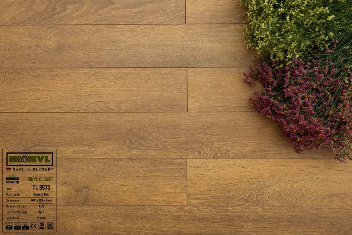 Sàn gỗ Binyl cao cấp nhập khẩu 100% từ Đức. Đây là một thương hiệu mới của năm 2020 với nhiều màu sắc đẹp. Ưu điểm nổi trội của sàn gỗ công nghiệp Binyl Đức là khả năng chịu nước khá ổn. Đặc biệt là dòng sản phẩm Binyl Pro cốt đen. Binyl là 1 thương hiệu của tập đoàn gỗ ván sàn hàng đầu tại Châu Âu là KRONOSPAN Lampertswalde.